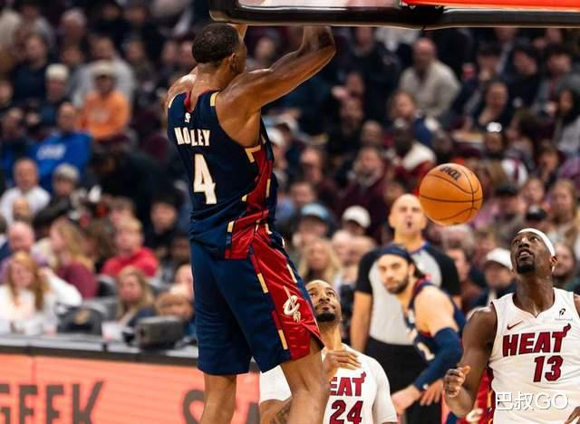 骑士首发,第二高度是1.96米的哈登。这本身就不是非常规玩法。是阿特金森觉得防不住,我就上进攻阵型硬刚。但问题是,热火的联防不怕这一套1大4小的阵容,阿德巴约对莫布里并不处在下风。骑士篮下就靠莫布里一个人护框,热火可以不断去冲击。如果有双塔的话,则局面不一样,骑士可以守住篮板球。
